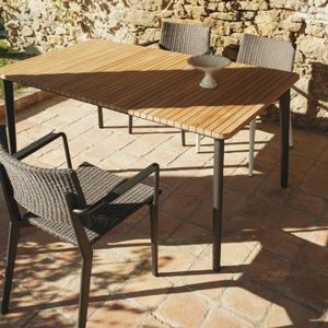 Riba Rectangle Outdoor Dining Table with Teak Top 63 inchColor options:Our price: $4,350Ships in 12 weeks
