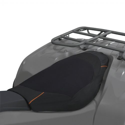 great weather and abrasion protection. Thick, padded stretch EVA seat top for comfort and durability. Keeps seat clean and dry. Protects seat against fading and other sun damage. Quickly fits to seat with adjustable click-close bottom straps. Elasticized hem for a quick and close fit. Machine washable. Fits most ATVs.