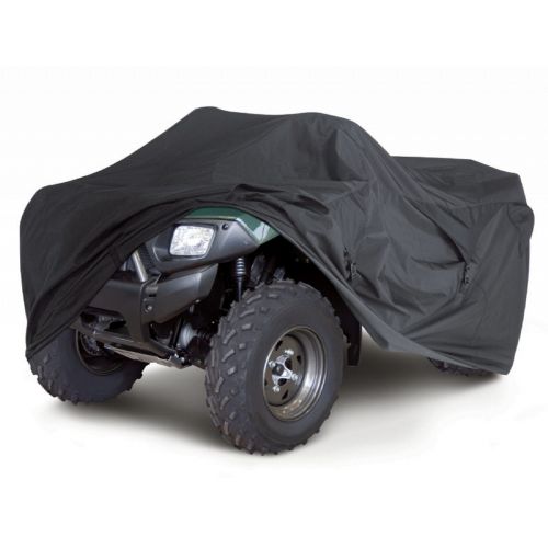 Tough UV resistant ProtekX™ Plus fabric with PU backing for extra weather and abrasion protection. Dual air vents reduce inside moisture and wind lofting. Zippered fuel tank and rear rack access doors. Integrated storage bag. Integrated trailering system with built-in quick adjusting straps. Tension panels tightly secure cover for travel. Side-release buckles. Slots in front for transport tie downs. Elastic cord hem for a fast and tight fit. Split rear panel for easy installation and transport tie-down access. 1 year manufacturers warranty