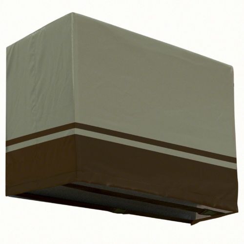 Villa Window A/C Cover Medium. Light but weather-resistant, our WeatherPro™ 3-ply polypropylene fabric provides an attractive line of covers at a surprising price while protecting against rain, snow, sun and dirt. It is PVC free and solution dyed for exceptional fade resistance. Air vents reduce inside condensation and wind lofting and straps tie around the legs to so the cover stays secure on windy days. Elastic corners provide a fast and secure fit, and it comes equipped with handles for easy fitting and removal.