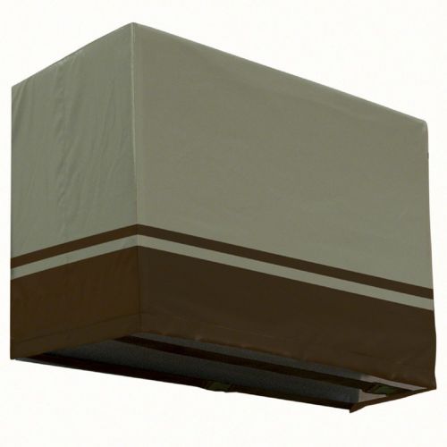 Villa Window A/C Cover Small. Light but weather-resistant, our WeatherPro™ 3-ply polypropylene fabric provides an attractive line of covers at a surprising price while protecting against rain, snow, sun and dirt. It is PVC free and solution dyed for exceptional fade resistance. Air vents reduce inside condensation and wind lofting and straps tie around the legs to so the cover stays secure on windy days. Elastic corners provide a fast and secure fit, and it comes equipped with handles for easy fitting and removal.