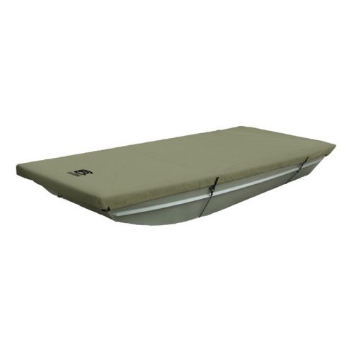 Jon Boat Cover Olive 10-12 ft. Protects Jon boats from dirt, sun and weather. Elastic cord in bottom hem provides a quick and secure fit. Reinforced corners Weather Protected™ polyester fabric resists mildew. Heavy-duty non-scratch D-rings. Dual air vents reduce inside moisture and air pressure in winds. Includes a handy storage bag and tie-down rope.
