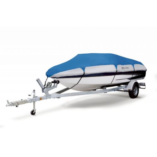 Orion™ Deluxe Boat Cover 16 feet has storage bag and trailering straps included. Tension panel system holds cover tight and distributes stress from high winds and highway speeds. Integrated buckle and strap system for easy fitting and trailering-adjustable straps snap into quick-release buckles on the cover. Full cut to allow extra room for accessories such as bow rails, running lights, etc. Dual rear air vents reduce inside moisture and ballooning of cover at high speeds. Rugged Orion™ Deluxe Marine Canvas won't stretch or shrink. Fabric coating technology resists dirt and stains while providing water resistance and repellency. Resistant to mildew and UV damage.Dual rear cinch cams pull hem tight to the hull for a close fit. 4 year manufacturers warranty.