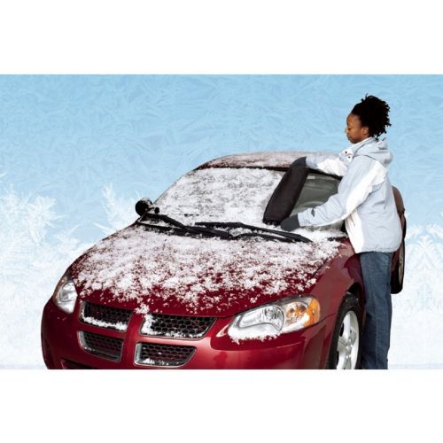 One size fits cars, pickups, vans, and SUVs. Save time when snowing - eliminates scraping your windshield. Attaches in minutes with two click-close straps that run through the inside of the vehicle. Easy and fast installation. Anti-theft design Folds into a compact attached storage case.