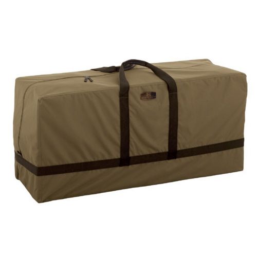 Hickory Patio Cushion Bag. The Hickory Series from Classic Accessories offers rugged good looks while providing years of weather protection. Weather10™ fabric features a rugged outer layer with a protective water-repellent and wipe-clean PVC undercoating. Its heavy-duty fabric and tough interlocking seams add strength and durability while the air vents reduce condensation. With so many great features, such as padded handles, this bag proves to be convenient and dependable as well as stylish.