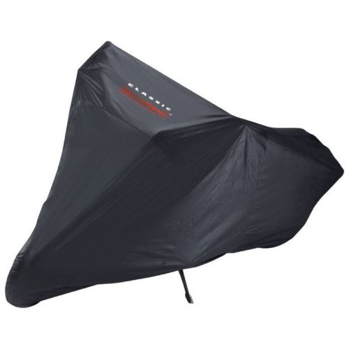 Motorcycle Cruising Dust Cover. With breathable, scratch-proof PolyPro™ fabric, this cover allows inside moisture to escape while keeping your bike dust-free when stored indoors. Its elastic-bottom hem and tie-down cords hold it tightly across the bottom of the motorcycle, and it features a lockable bottom. Included are a matching storage bag and two elastic tie-down cords.