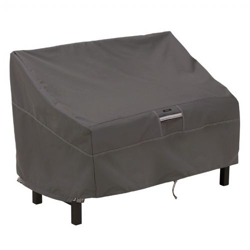 Ravenna Patio Bench Cover. The Ravenna covers from Classic Accessories combine a striking style with durability, fade-resistance and convenient features. It reinforced padded handles make removal easy while double-stitched seams add strength and a stylish accent. Structured vents stay open to prevent wind lofting and mildew and are lined with mesh barriers. Laminate backing keeps your grill dry while elastic hem cords move easily through a special channel for a snug fit. Four custom-colored buckles keep your cover secure in any weather. Adjustable webbing belts slide easily for a tailored look. Striped webbing adds an attractive accent and is unique to the Ravenna collection.