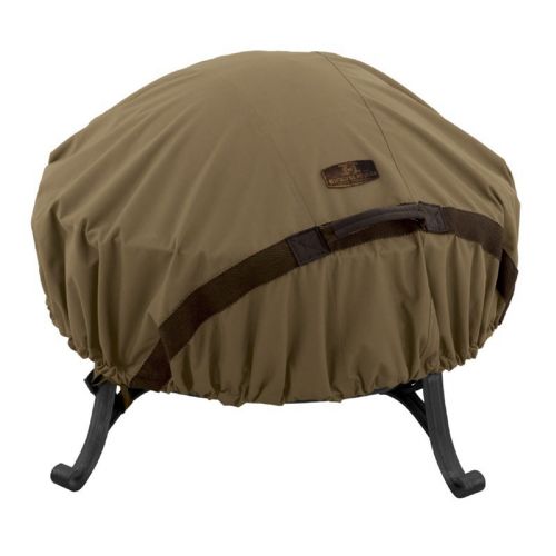 Hickory Fire Pit Cover Round Medium. The Hickory Series from Classic Accessories offers rugged good looks while providing years of weather protection. Weather10™ fabric features a rugged outer layer with a protective water-repellent and wipe-clean PVC undercoating. Its heavy-duty fabric and tough interlocking seams add strength and durability while the air vents reduce condensation and wind lofting. With so many great features, such as padded handles, adjustable elastic hem cord, and click-close straps that keep your cover secure on windy days, this cover proves to be convenient and dependable as well as stylish.