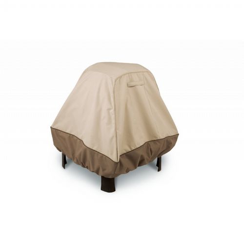 Special treatments ensure fabric won't crack in cold weather. Click-close straps snap over legs to secure cover on windy days (round fire pit covers only). Padded handles for easy fitting and removal. Elastic hem cord with a toggle allows adjustment for a tight and custom fit