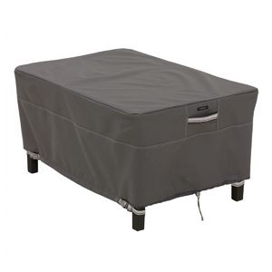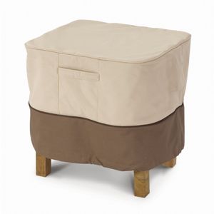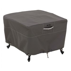 Fits rectangle outdoor ottomans and side tables. Winter covers are totally waterproof and have been UV treated to last years outdoors. A drawstring fastens it secure. Vinyl is soft and rich to the touch and will add luxury to your patio while protecting your furniture investment. Use them under Rain, Snow, Hot Summer sun or Harsh Winter with sub zero temperatures. Dimensions: 25" wide × 32" deep × 18" tall. 3 Years Manufacturer's Prorated Warranty.