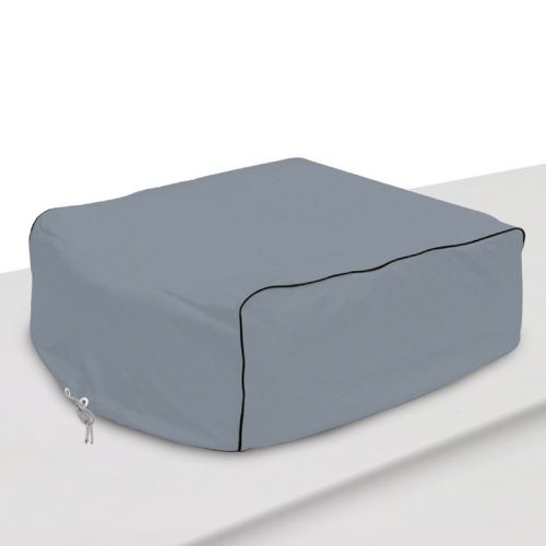 RV Air Conditioner Cover gray Large. Protect your RV A/C unit from weather and debris with this great, easy-to-install cover. Sleek and stylish, it is waterproof with a soft backing so your A/C will not be harmed. Featuring two heavy-duty straps, a draw cord for security, and a heavy, thick construction, you can depend on this cover in all weather.