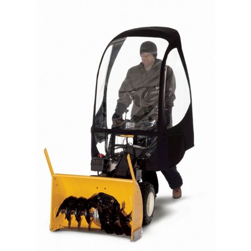 Roomy cab with heavy fabric shell and thick steel tube frame protects against the worst winter weather and heavy snow blow-back. Protects operator from wind, sleet and snow