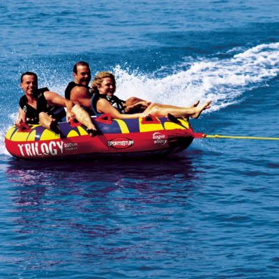 Three person towables provide fun for all trios. Sharing the fun among two of your best buddies is what the triple riders are all about. Reaching high speeds with our triple riders is triple the fun.