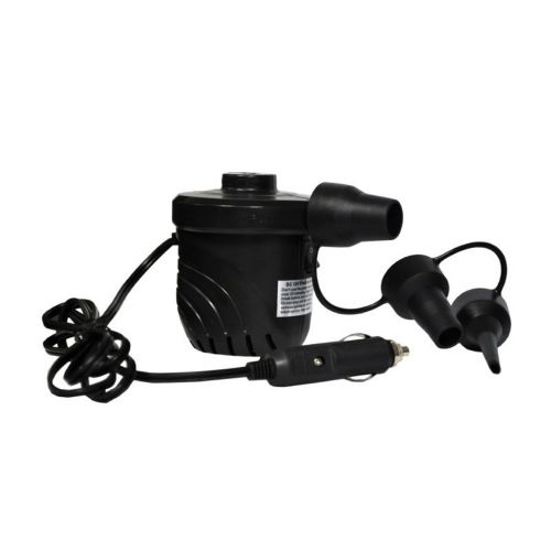 The DC12V Electric Pump features 1.2 PSI, 25CFM, a DC receptacle plug for boat, RV or car, and 3 standard inflation adaptors.