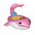 Pink dolphin baby pool float for infants and babies. Provides a wonderful way to help youngsters 2 years and under get used to having fun in the water, with parental supervision. The pocket seat has leg holes for kick-powered action. Built of sturdy 10-gauge vinyl. Fits most babies 6 months to 2 years. Size 34 inches × 30 inches. Easy to inflate and easy to deflate. The Dolphin's tail curves up and over the seat for sun protection.