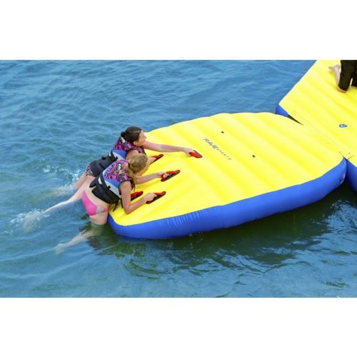 The Boarding Platform can be used with the Activity Island or in conjunction with the Access Ramp to an Eclipse water trampoline or Bongo bouncer, as well as with the Rope Swing and Access Ramp to make a free standing Rope Swing. It features commercial grade reinforced construction that is UV-treated and anti-mold and mildew, 6 boarding handles, heavy duty anchor point and a rapid inflation/deflation valve.