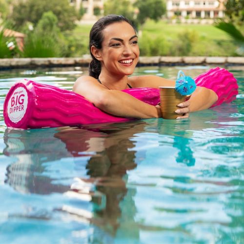 Flamingo Pink Big dipper is a jumbo sized pool floatie. Covered with vinyl and made with closed cell foam. This pool float has 6 inch diameter and is 43 inches long. Suitable for kids and adults. Vinyl coating is hygienic.