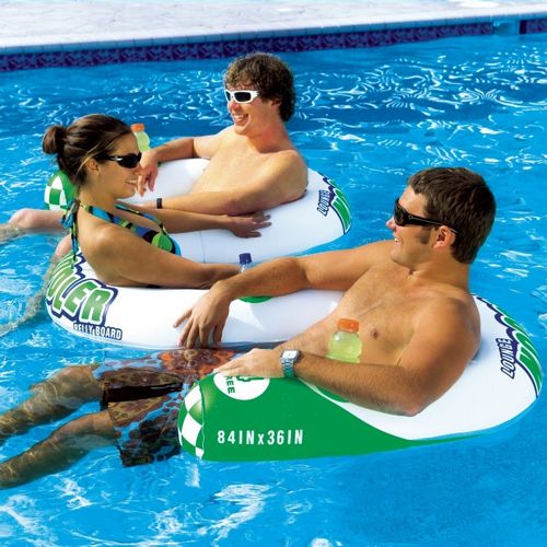 Three Person Noodler Water Seat. Made with heavy-gauge PVC. Contoured inflatable arm and backrests. Comfort mesh seating. Molded cup holders. Great for a round of relaxing chat. Get your best friends on the noodler and enjoy the cool waters. You can also flip the Noodler over and have a custom belly board to splash up some fun with!