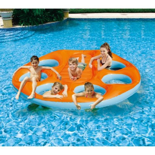 Create your own island oasis for multi-person fun and relaxation. A little island retreat will go a long way in inviting your guests into the pool or spending good family time together. Featuring a padded center to lounge on and 6 holes to swim through or relax on, this tropical oasis is a full 77" in diameter and comes complete with pull rope. Made of strong, durable PVC material for years of enjoyment. Product dimensions: 77" diameter.