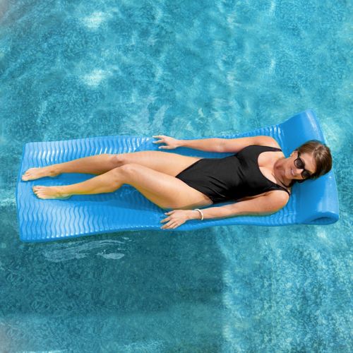 Unsinkable Bahama Blue pool float is one of our many popular unsinkable foam pool floats. Extra thick coating of glossy vinyl adds beautiful shine. Unsinkable pool float has cooling rippled texture. Luxury swimming pool float features half circle head rest. Permanently buoyant, very soft and very comfortable. Resists the effects of chlorine, sun and salt water. Unsinkable pool float is made of soft and easy to clean vinyl coated 1.5" thick closed cell foam. Dimensions: 70" L × 25" W × 1.5"T. Made in USA.