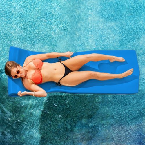 Bahama Blue Sunsation foam pool float is a vinyl coated luxury float. Swimming pool float is made of soft and easy to clean vinyl coated closed cell foam. Permanently buoyant closed cell foam floats even when punctured. Both sides of the swimming float are covered with smooth glossy vinyl. It is one and three quarters inch thick which gives average adult moderate stability in water. Features a full roll pillow designed for extra buoyancy in the head area and support for neck. Sunsation pool floats are available in variety of exciting colors.