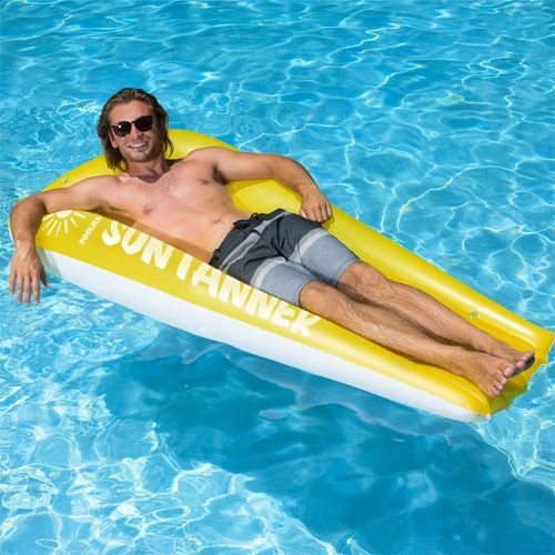 YellowThe Suntanner pool mattress is long enough for most adults. It is easy to get on and off. The sides helps to keep you from slipping off.