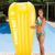 Yellow Suntanner Pool Mattress provides a wrap-around cradle for full body comfort on water or on the deck. The contoured design is wide at the top with a large pillow area, and features full-length side pontoons for great stability. The new inflatable comes in yellow, pink and blue florescent colors with white bottoms. It is made of sturdy vinyl with three air chambers. Inflated size is 72.5" × 33.5".
