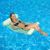 Green Water Hammock Lounger combines floating comfort and portable convenience. Inflatable pieces on the head and legs provide comfortable buoyancy. Simple, unique design allows most of the body to be submerged for cool relaxation. All-weather fabric body features bright new colorful stripes in blue, green or pink. Lounge rolls up compactly for travel or storage.