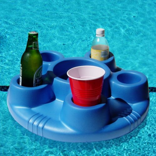 Water snack buoy is perfect for pool parties or a relaxing afternoon in the pool. The unsinkable Snack Buoy keeps snacks, refreshments and other goodies nearby without having to leave the water. Stylish, custom-molded design provides the ultimate in fashionable flotation. Large center compartment surrounded by five small holders to store sunscreen, beverages, snacks and other necessities. Available in blue and lime.