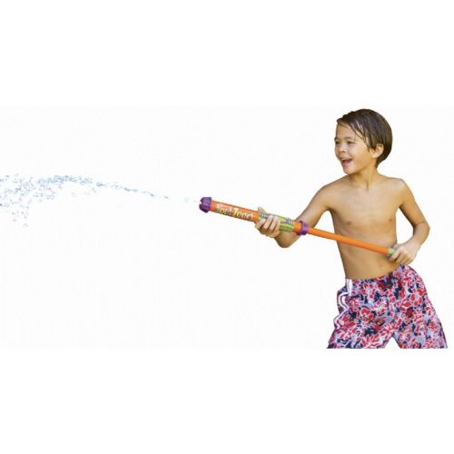 Soak your friends with AQUA ZOOKA! This easy to operate, quick filling water bazooka is constructed of high-impact thermoplastics, and will last for seasons of fun. Simply dip AQUA ZOOKA into the water and pull back on the handle to siphon water up into the barrel. You're ready to fire, with a range of up to 60 feet! AQUA ZOOKAs are equipped with comfortable EVA handles so that you won't lose your grip, even with wet hands in the heat of battle! The EVA handles also ensure that AQUA ZOOKA will float on top of the water. Doubles as a bilge pump or household siphon!