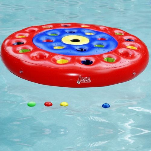 Rocket Pockets pool game can be used in an out of the pool. This is a great game for the whole family. Great for kids and adults. Set includes floating target board and four floating balls, one repair kit, tiedowns. Kids, teenagers and adults team up for hours of competetive fun. Moving target in the pool makes it more fun and requires better skills. You can play in the pool or on land. Color coded ball and holes makes it more fun.