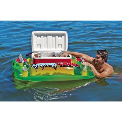 Take the Inflatable Cooler Caddy to the pool, lake, or river with you to keep your refreshments close at hand while you're away from land. Its four cup holders will keep your drinks safe above the water, and it can be tethered to a dock or boat with the convenient molded tether points. It fits up to 48 quart coolers with dimensions up to 28" long × 17" wide.