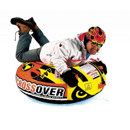 Big Crossover is a round snow tube built heavy-duty style. Oversized double webbing foam handles, heavy-duty double stitched partial nylon cover, and a slick durable PVC tarpaulin bottom. Fly down your favorite sledding hill in air cushioned comfort on this joy ride. Slope pro snow tubes are made especially for those who seek serious sledding with comfort. Accomodates single rider. Inflated: 44 inches diameter.