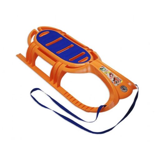 Orange snow tiger plastic snow sled is great for all kids over the age of 4. Sled features bright colors, stainless steel runner inlays, soft foam seating pad, integrated pull cord and anti-slip driver seating and foot zones. Recommended for ages 4+.