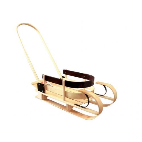 Push your little ones through a winter wonderland on their very own St. Nick Dasher Push Sleigh by Eurosled. Made from beautiful natural-finish wood, this classic push sled has modern black accents that are sure to give your magical sleigh ride the right feel. Unique to the St. Nick collection, this backward facing push stroller is one of a kind with a black coaming tail, double backrest, and a fabulous steamed oak handle. Its wide runners create a smooth, stable gliding surface, even over soft snow.
