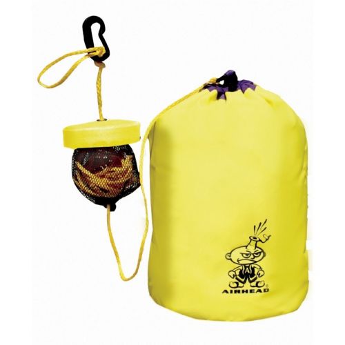 Turn your towable into a portable swim platform with AIRHEAD's Tube Anchor. While the kids are lounging or playing on the tube, adults get to enjoy a little quiet time on the boat, dock or beach! AIRHEAD's Tube Anchor bag is constructed of durable reinforced PVC/polyester tri-laminate. Simply fill it with rocks or sand and drop it into the water. The buoy has a convenient mesh compartment inside for stowing slack from the 20 foot long rope. A giant acetyl snap hook allows for easy hook ups to your tube's handle or tow strap.