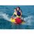 Two rider towable tube from Airhead. Double dog is built to last; the 30-gauge PVC bladder is completely covered in double-stitched 840-denier nylon, with no exposed vinyl. It has 2 deluxe handles with neoprene knuckle guards and seat pads. The Boston valve is easily accessible, for quick inflating and deflating. Size: 76" long × 44" wide.