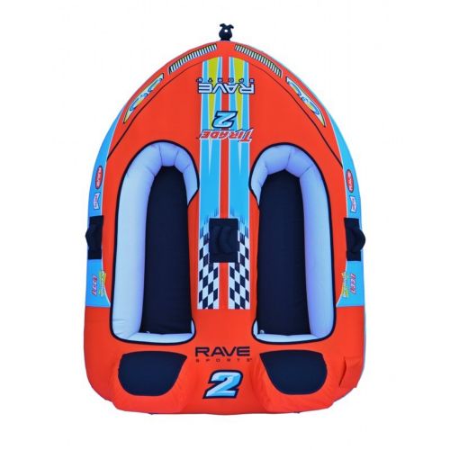 The Tirade II towable features two deep 42" long, oversized sports car inspired cockpits for a low center of gravity and stability and a skim-fast bottom for a slick ride. Equipped with neoprene covered headrests and inflatable floors, you can be comfortable as you race across the water. Hold on tight with the 4 attached foam-filled handles that sport neoprene knuckle guards while you blast water 15 fet into the air with water blasting RAVE tail! Stay-brite technology repels dirt, water, and provides color fastness so you know you can use this towable and look just as cool time and time again.
