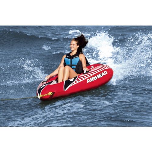 Viper cockpit style towable tube. The bottoms are shaped like boat hulls which is the key to the unparalleled lively and stable ride. VIPERs are especially popular with young children, as they feel very safe sitting on the comfortable inflated floors inside the cockpits. Kids and adults will enjoy the stunning NASCAR-inspired graphics. The durable 30 gauge bladders are completely encased in durable double-stitched nylon, there is no exposed PVC. The striped nylon wrap handles have neoprene knuckle guards for comfort. An EVA "Indy Cap" covers the Boston valve.