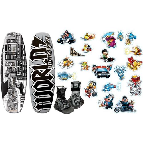 Create your own street action in the "hood" on WORLD INDUSTRIES' STICK-O-RAMA wakeboard! The wakeboard is an inner city background that you decorate with the stickers provided. Flameboy and Wet Willy are making trouble and the piggy police are frantically trying to restore law and order! If you want smooth transition through turns and a consistent pop off the wake, this board is for you. The rounded end profile and beveled perimeter provide a forgiving and consistent release off the wake. Riders of all levels will enjoy the floaty nature of this 135cm free-ride wakeboard. Designed for riders up to 170 lbs., 2 removable fiberglass reinforced nylon fins provide excellent tracking. MUD BUDDY is a front entry lace-up binding with one cinch adjustability. A simple pull on the handle and you're ready to go. It's comfortable and user friendly, offering the fit and support to allow riders to progress quickly. Fits adult size 8 - 12 (EU 37-46).