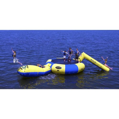 The Bongo 15' Water Park's bouncer has no frames or springs which makes it ultra lightweight and portable so you can use it at your cabin, at your lake home, or bring it on your yacht! Optimize your bouncer with the included attachments -- fly into the water with the Aqua Launch or use the Aqua Slide to make getting back into the water a fun activity all its own.