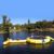 Island Hopper™ Giant Jump water trampoline is a monster lake trampoline using the highest quality materials and features available. The choice of hundreds of camps and resorts world wide. Product features include: Heavy commercial construction using 40oz. 1100 Denier UV resistant PVC material. 2 YEAR seam "NO BLOW-OUT" and 5 year frame and hardware limited warranty. 3 chamber inflation tube guarantees structural strength and assures the tube is always floating. Heavy load bearing molded plastic 4 step ladder for easy swimmer access.6 anchor-tie D-rings (3 inside and 3 under tube) for secure anchoring and mooring. 12 swimmer assist handles for ladder and water assistance. Galvanized steel frame,9" cross tapered springs, 24 frame secure tie straps. UV Resistant protective pads, heavy load bearing plastic. Includes: Carry/storage bag and repair kit. 1 year jump surface replacement warranty. 2 heavy load bearing plastic ladders. Available attachments (sold seperately): Bounce N' Slide water slide, Island Runners connectable, pontoon assisted climb/sit/walk on swim floats.