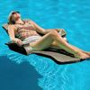 I love my Riviera Sunlounge. I can take my drink and food floating with me!! Being able to float and tan without getting wet is awesome. I can float earlier and later than people with mesh bottom floats. No fish nibbling my bottom! The 2 size inflator allows me to fill up super fast as well as deflate quickly since I bring it back and forth to the beach in my backseat. This is the best float I have ever found and I have been a floater for decades. I highly recommend it. My friend just bought one because it's better than all the ones she's tried.