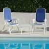 These chairs are heavy enough to not blow around but light enough to easily move. Great quality. Actually a lot better than expected. Happy with the purchase