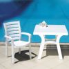 Excellent stackable chairs. We've had 4 for 5 or 6 years and just bought two more. Previous 4 chairs still very white with no staining despite being outside for years.
