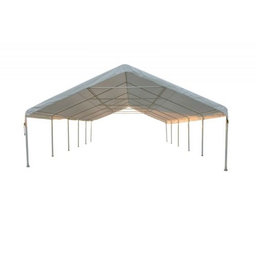 24x30 canopy, 2-3/8" frame, white cover. The ultra max big country canopy is the ultra strong, ultra wide ultra max canopy is the perfect storage or event solution. Its frame is made up of heavy-duty 2-3/8" diameter all steel (12 Leg) frame and Dupont™ thermoset baked on powder-coated finish prevents chipping, peeling, rust and corrosion. Its quick and easy set-up with built-in slip together swedged tubing and wide foot plates on every leg ensure easy access to secure anchor points. Its cover is fitted, fully valanced polyethylene cover and it is 100% waterproof with advanced engineered, triple-layer and rip stop fabric features. It has uv treated inside and out with added fade blockers, anti-aging and anti-fungal agents. The 50+upf rating blocks more than 98% of UV harmful rays. The upf represents ultraviolet protection factor and indicates how much of the sun's radiation is absorbed. The 50+upf is the highest fabric rating for radiation exposure. There are only 2% of the UV rays will penetrate through the shade fabric. The twist tite™ tensioning squares up frames and tightens down covers.
