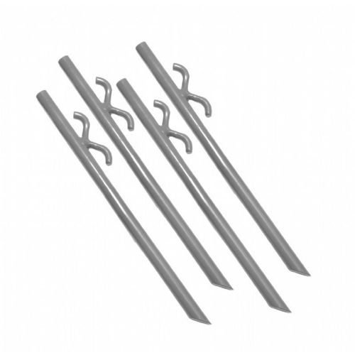 The ShelterStake™ 12" Drive Anchor is the perfect anchor for temporary or semi permanent shelters. These ultra strong shelter stakes securely anchor fixed leg canopies, pop-up canopies, shelters, temporary structures in virtually any soil condition with optimal ease and effectiveness. They are manufactured with high grade solid steel - DuPont™ Premium powder coat finish for maximum durability in nearly any condition. The innovative cut design takes a bite and holds on tight, it is easy to drive in and take out with no holes, digging, or concrete required. Double S hook welded cleat design is meant for quick and easy tie down of anchor ropes. The anchors come with 40 ft. of marine grade coated rope