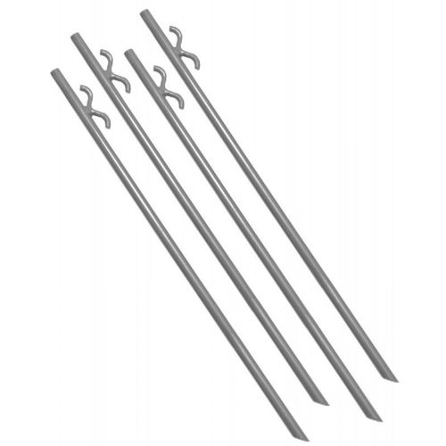 The ShelterStake™ 24" Drive Anchor is the perfect anchor for temporary or semi permanent shelters. These ultra strong shelter stakes securely anchor fixed leg canopies, pop-up canopies, shelters, temporary structures in virtually any soil condition with optimal ease and effectiveness. They are manufactured with high grade solid steel - DuPont™ Premium powder coat finish for maximum durability in nearly any condition. The innovative cut design takes a bite and holds on tight, it is easy to drive in and take out with no holes, digging, or concrete required. Double S hook welded cleat design is meant for quick and easy tie down of anchor ropes. The anchors come with 40 ft. of marine grade coated rope