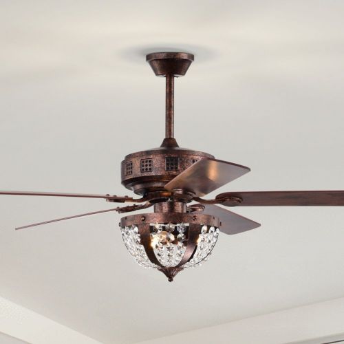 Chandler 52" 3-Light Indoor Antique Copper Finish Ceiling Fan with Light Kit and Remote Allow your home to become an aesthetic galore with our 52-inch Antique Copper Chandler Ceiling Fan Chandelier. Our fixture features three 3 lights that are accompanied by a crystal-decorated shade which allows your home to turn into a dream come true when you bring the light to life.