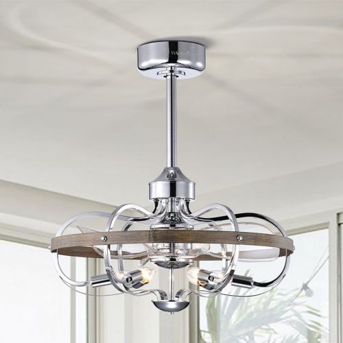 Davina 24.2" 6-Light Indoor Chrome Finish Ceiling Fan with Light Kit and Remote Introduce a modern farmhouse-look to your home interior with our 24-inch Chrome Davina Ceiling Fan Chandelier. Garnished in Faux Wood Grain, our lighting fixture features 6 airing abilities to choose from in which you're bound to find the right level of cooling comfort.